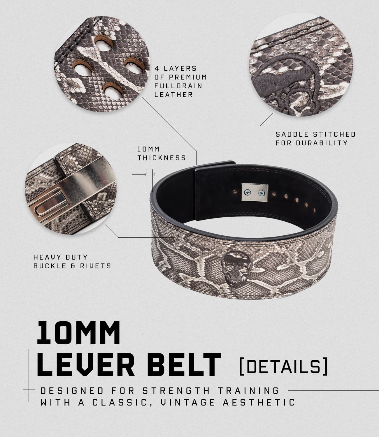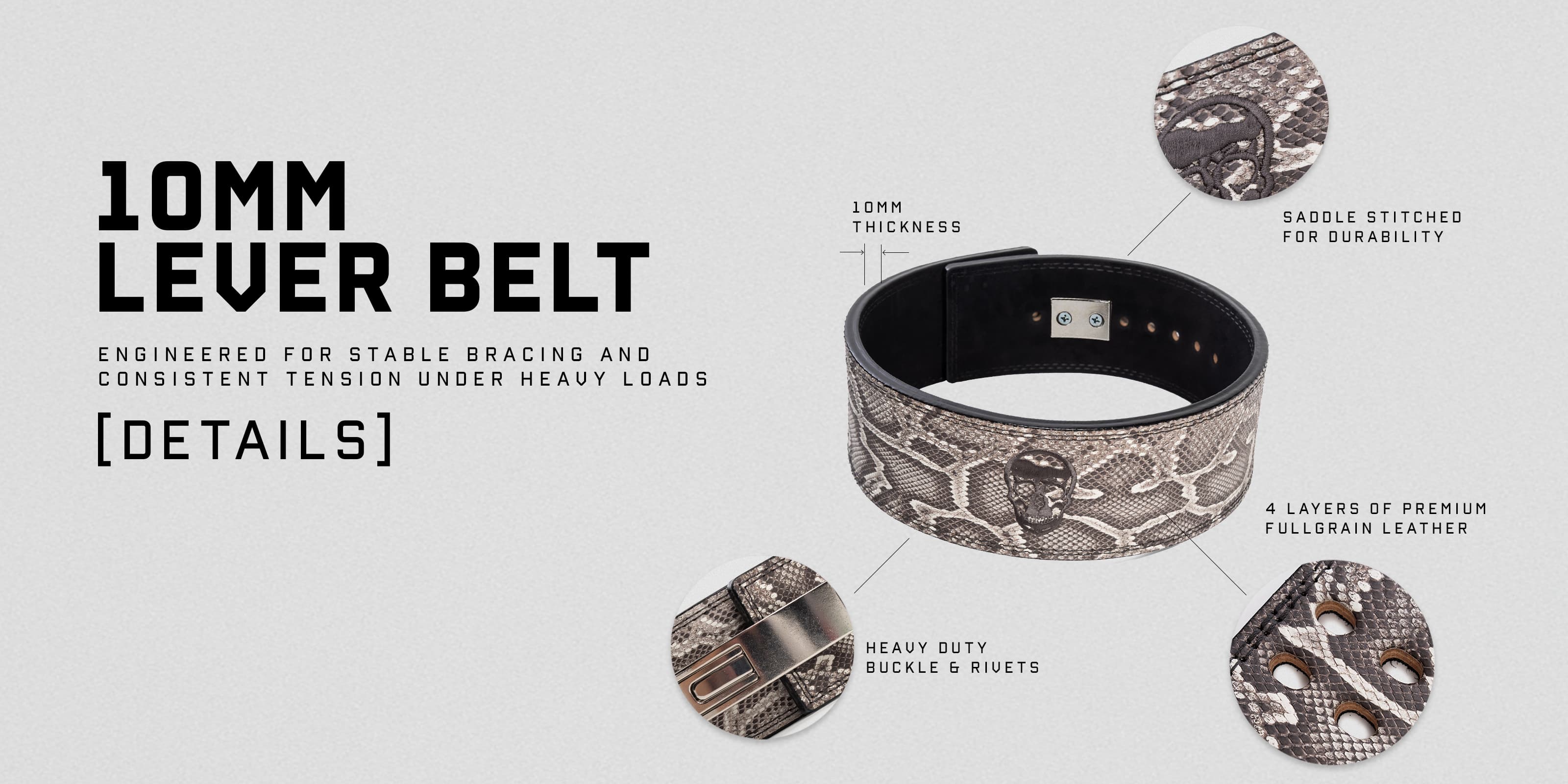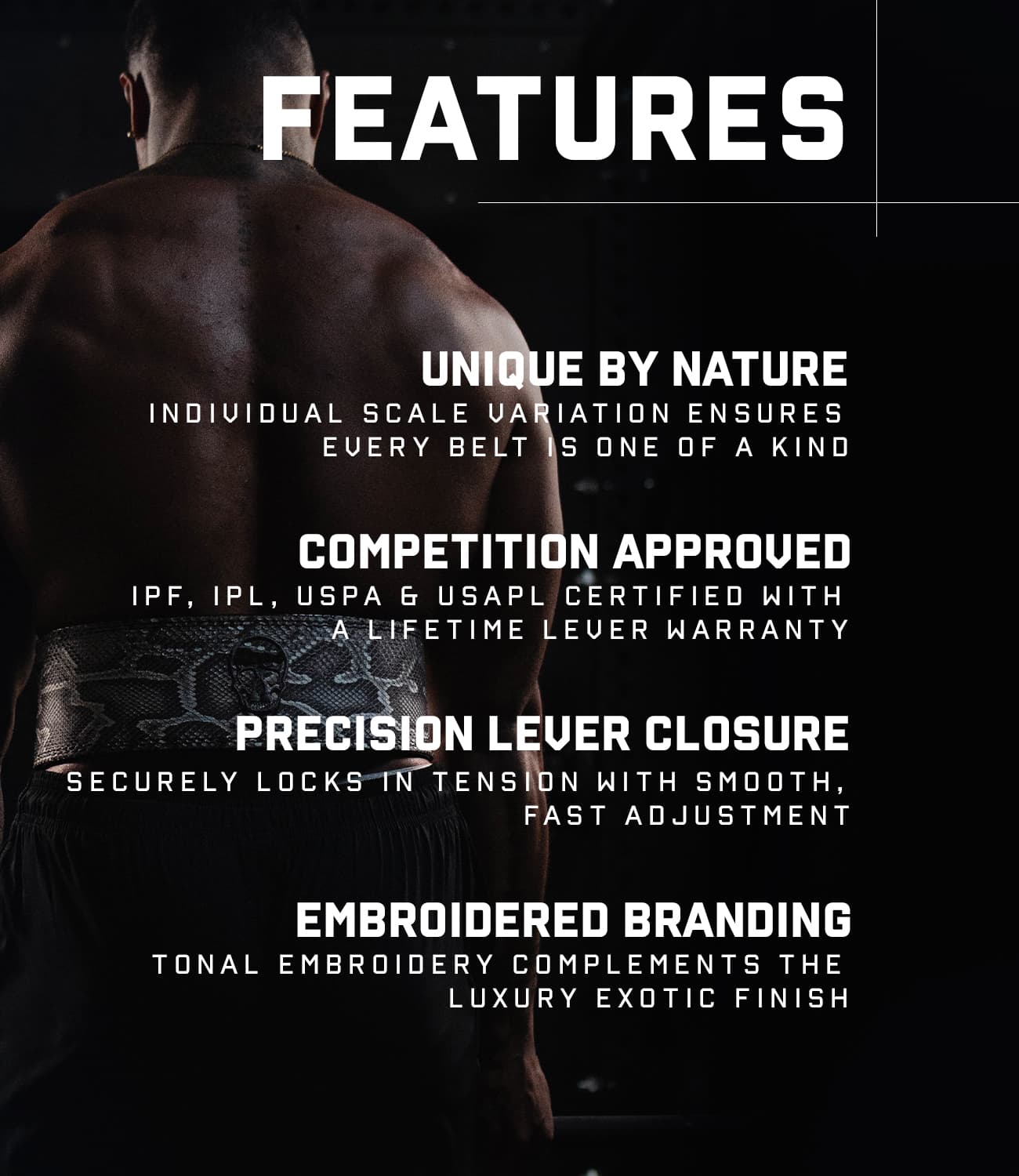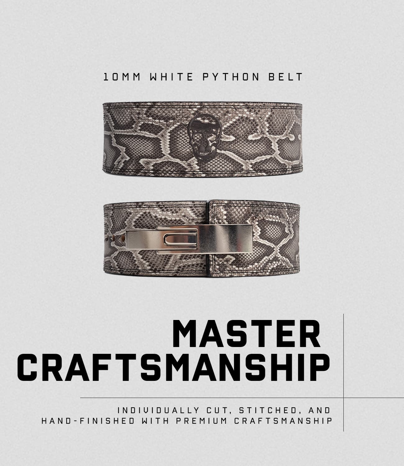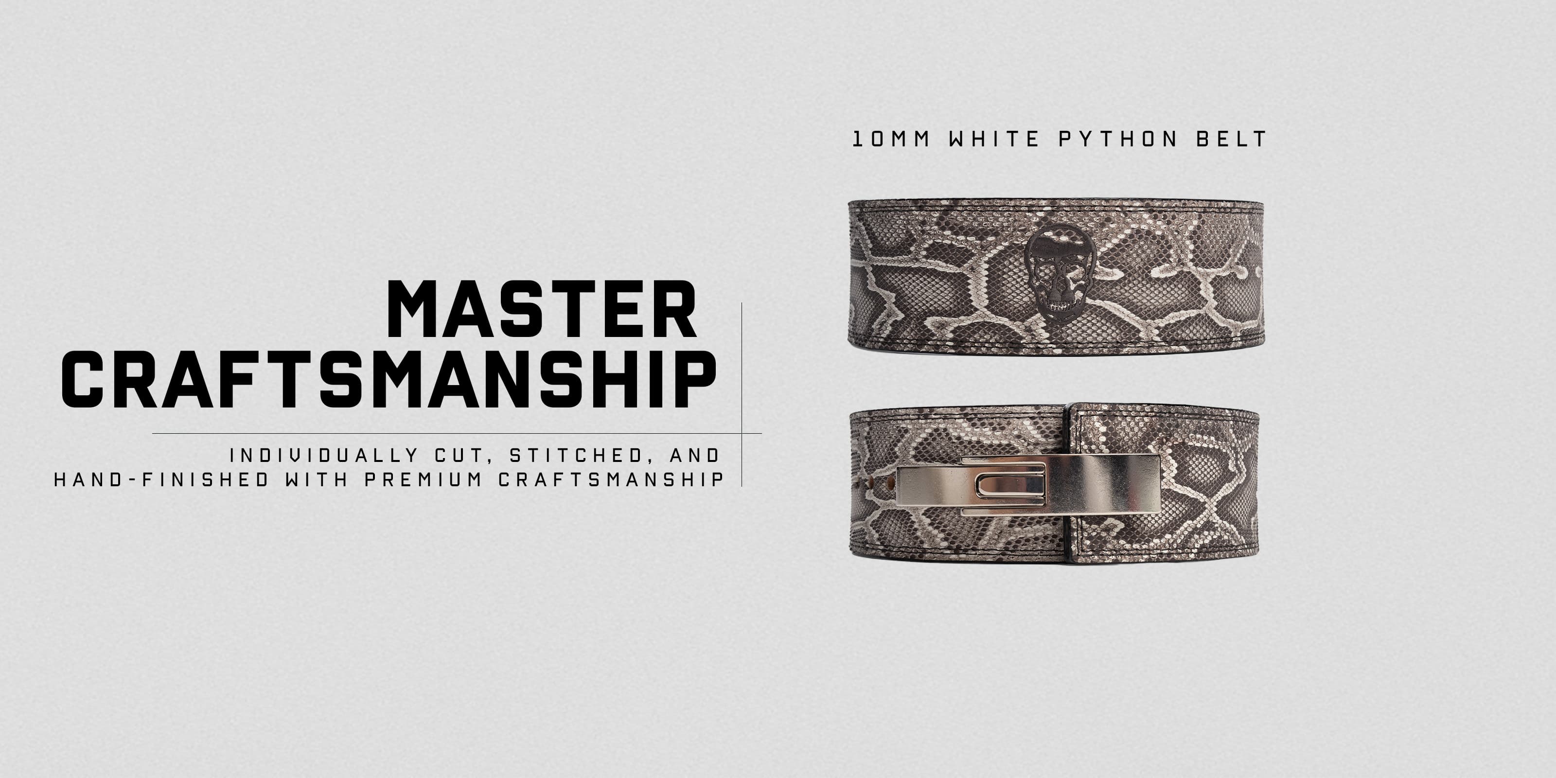 Introducing the White Python Lever Belt; part of Gymreapers’ first-ever exotic belt collection. With polished nickel hardware and a textured ivory pattern, this belt is the embodiment of rare luxury and performance.