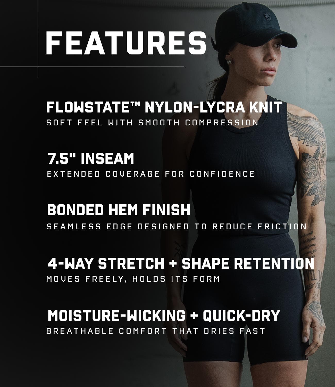 The Axis 7.5” Shorts deliver elevated coverage with unrestricted mobility. Crafted from FLOWSTATE™, they provide a soft, breathable handfeel with smooth compression that contours to your shape. The bonded hems create a seamless edge that reduces friction and moves effortlessly with you, from heavy training to active recovery.