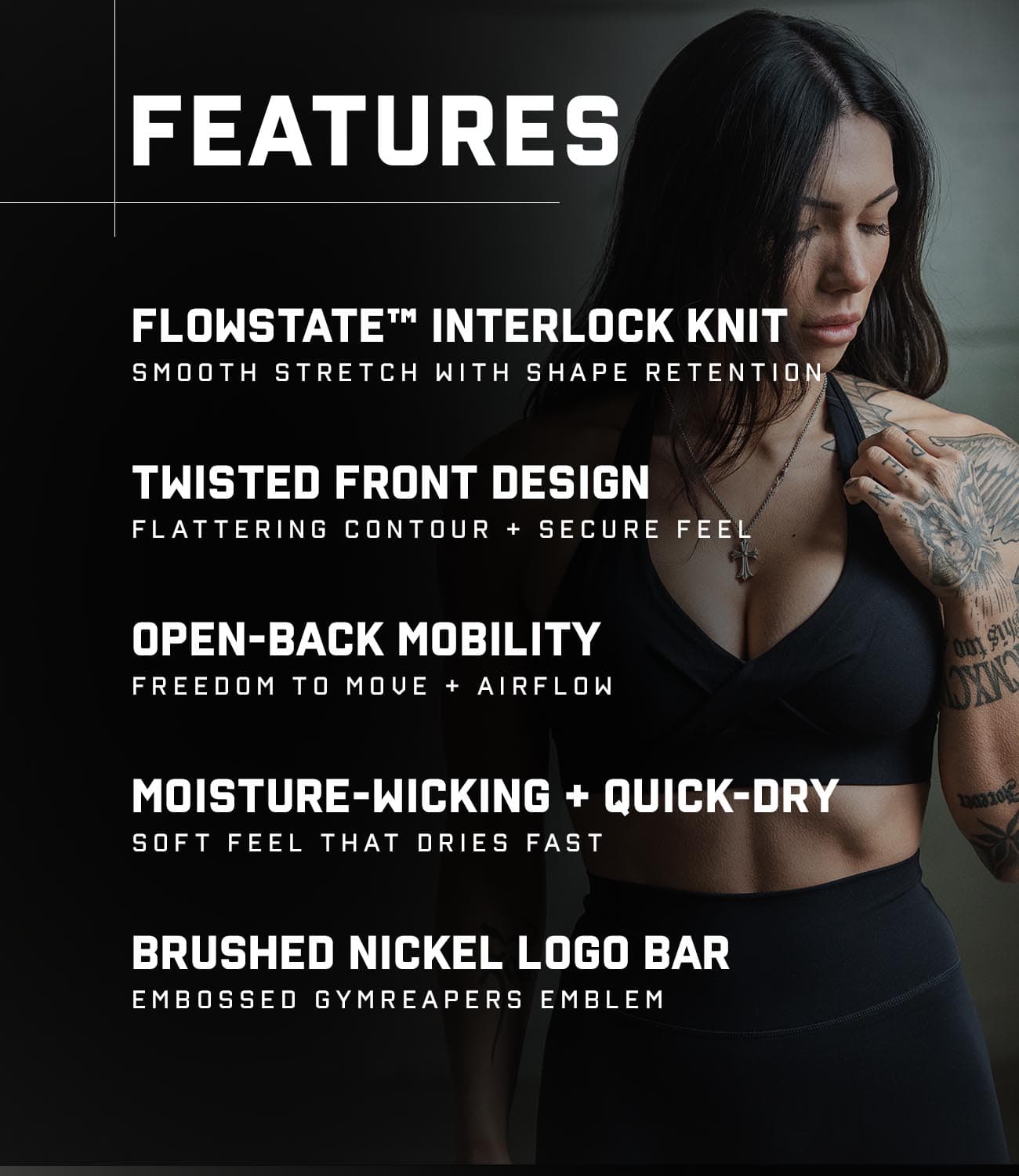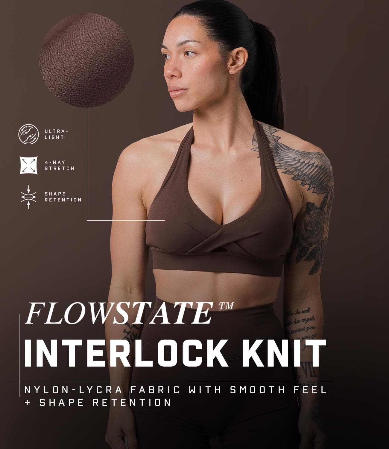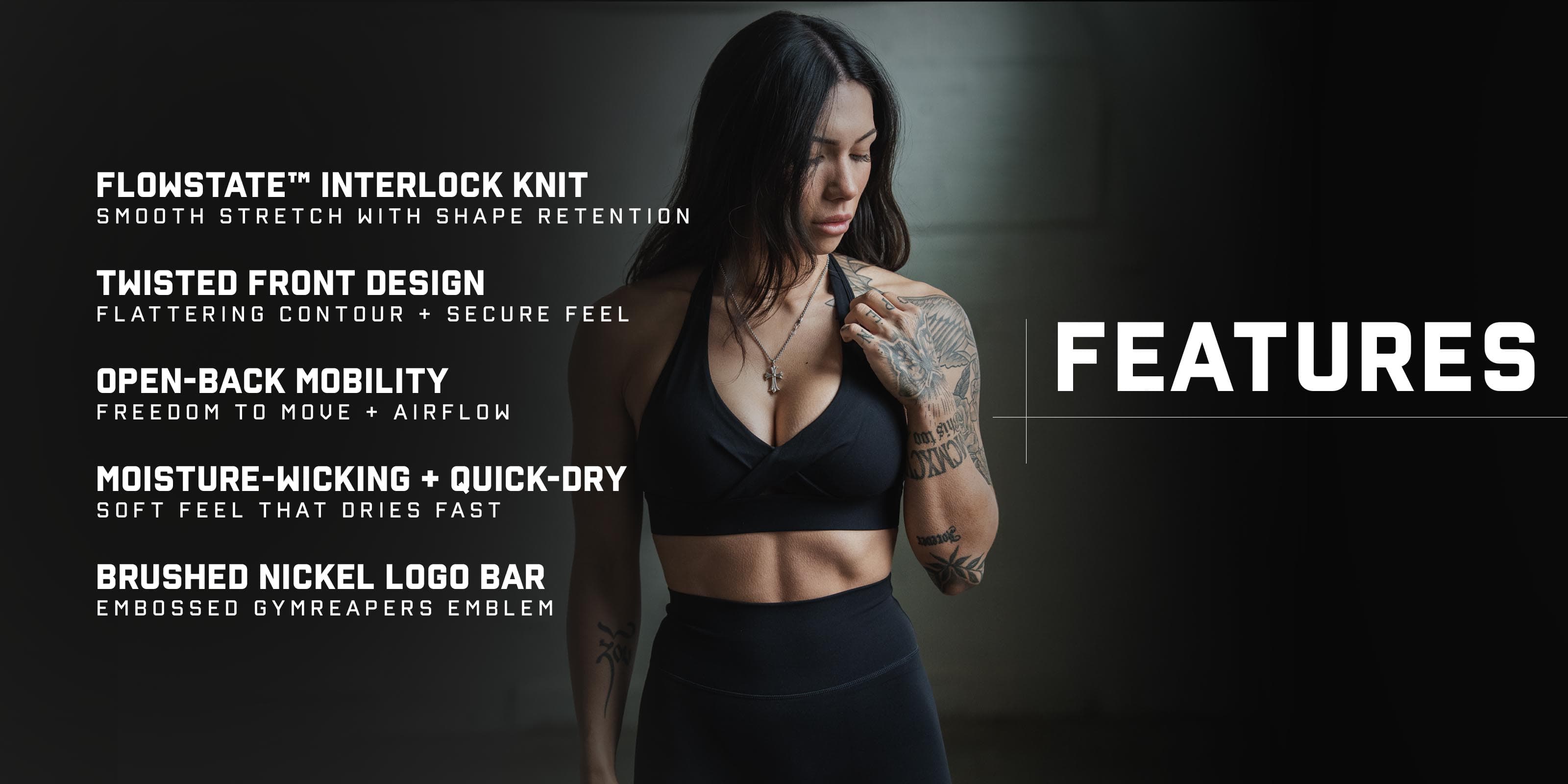 The Axis Twisted Halter Bra combines sculpted design with unrestricted performance. Crafted from FLOWSTATE™, Gymreapers’ proprietary nylon-lycra interlock knit, it delivers superior stretch, shape retention, and a smooth, breathable feel. The twisted front creates a flattering, supportive contour, while the comfortable open-back design offers full freedom of movement.
