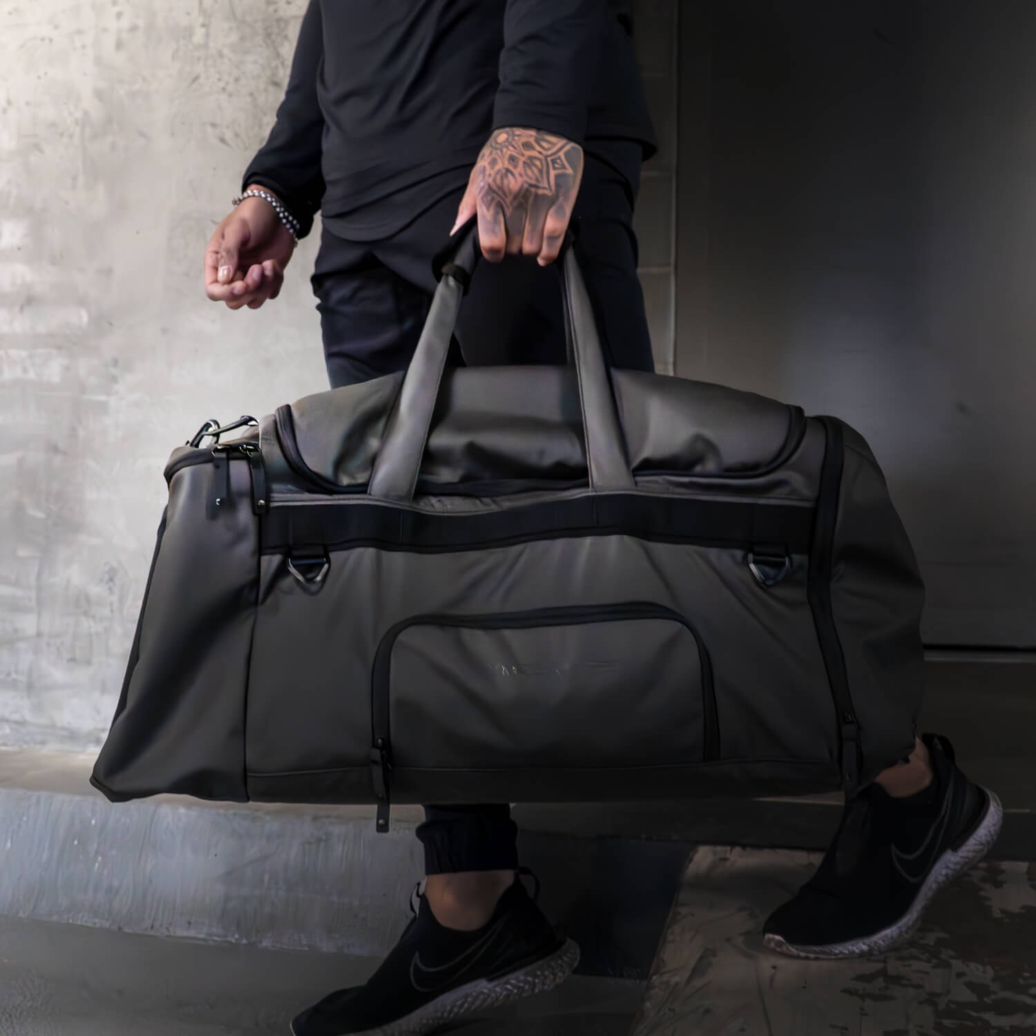 - Standard duffle and crossbody carry options