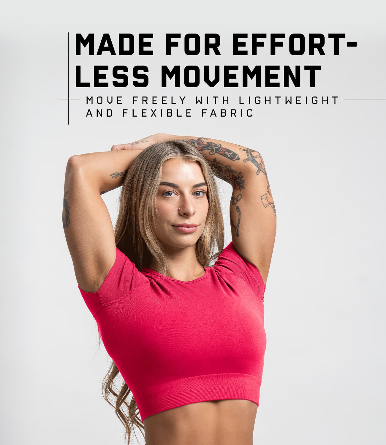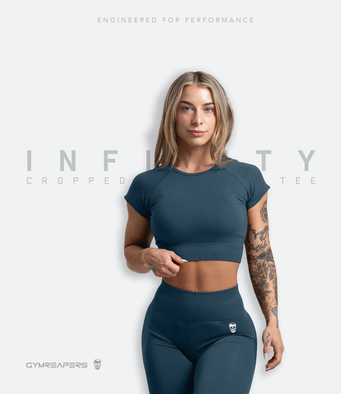 The Infinity Seamless Cropped Tee is built to deliver a secure, locked-in fit that stays put through every session. With medium compression and a sculpted feel, it moves with you without shifting or riding up. The cropped length adds a clean, athletic look that holds up under pressure—whether you're stretching, lifting, or layering it into your daily routine. The model is 5'1", wearing a size S in the Cropped Tee.