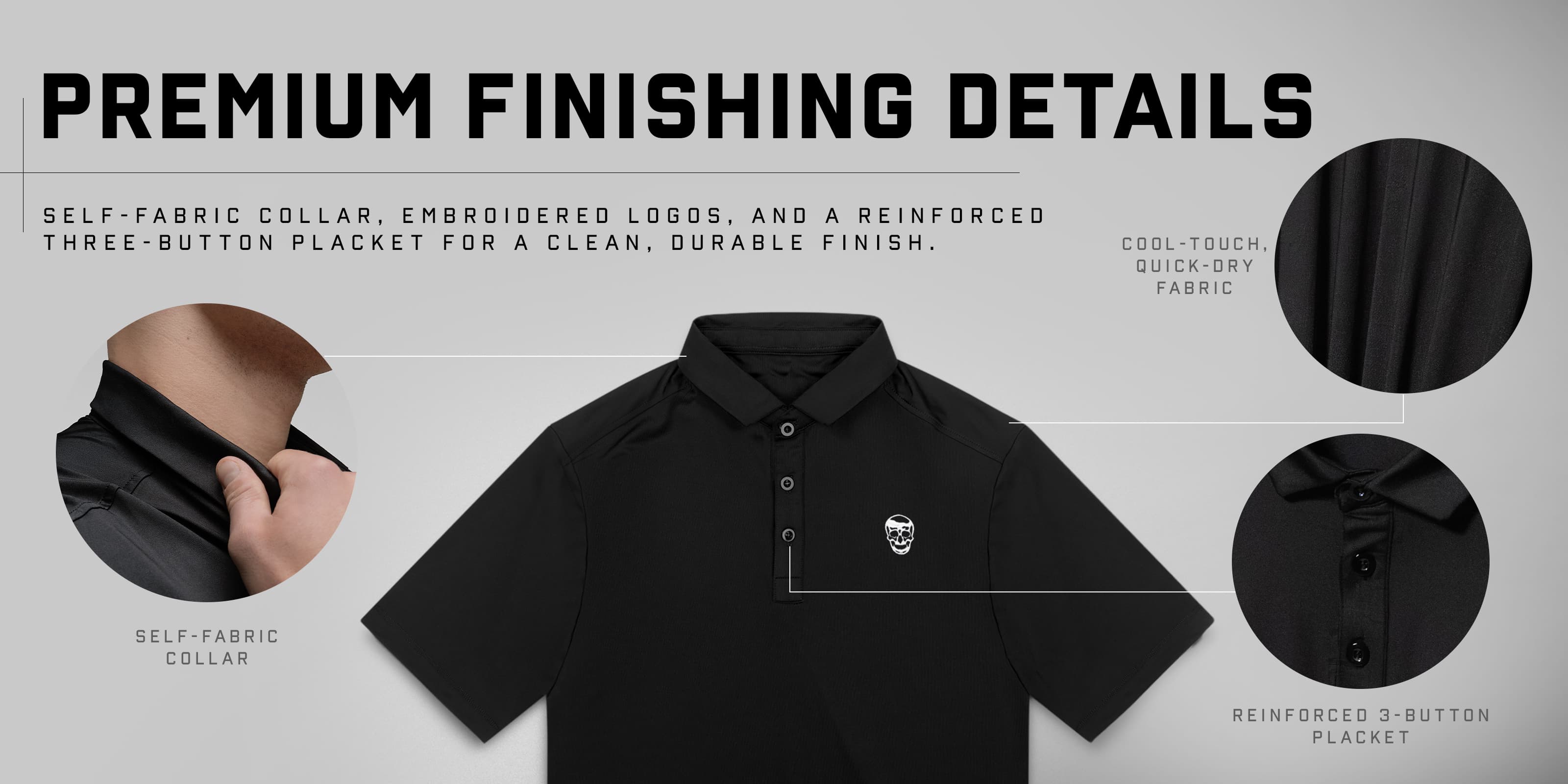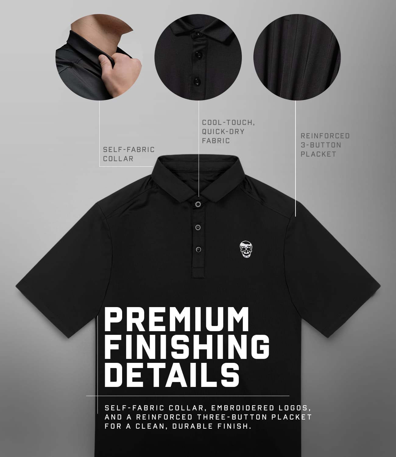 - Durable 3-button placket with reinforced stitching