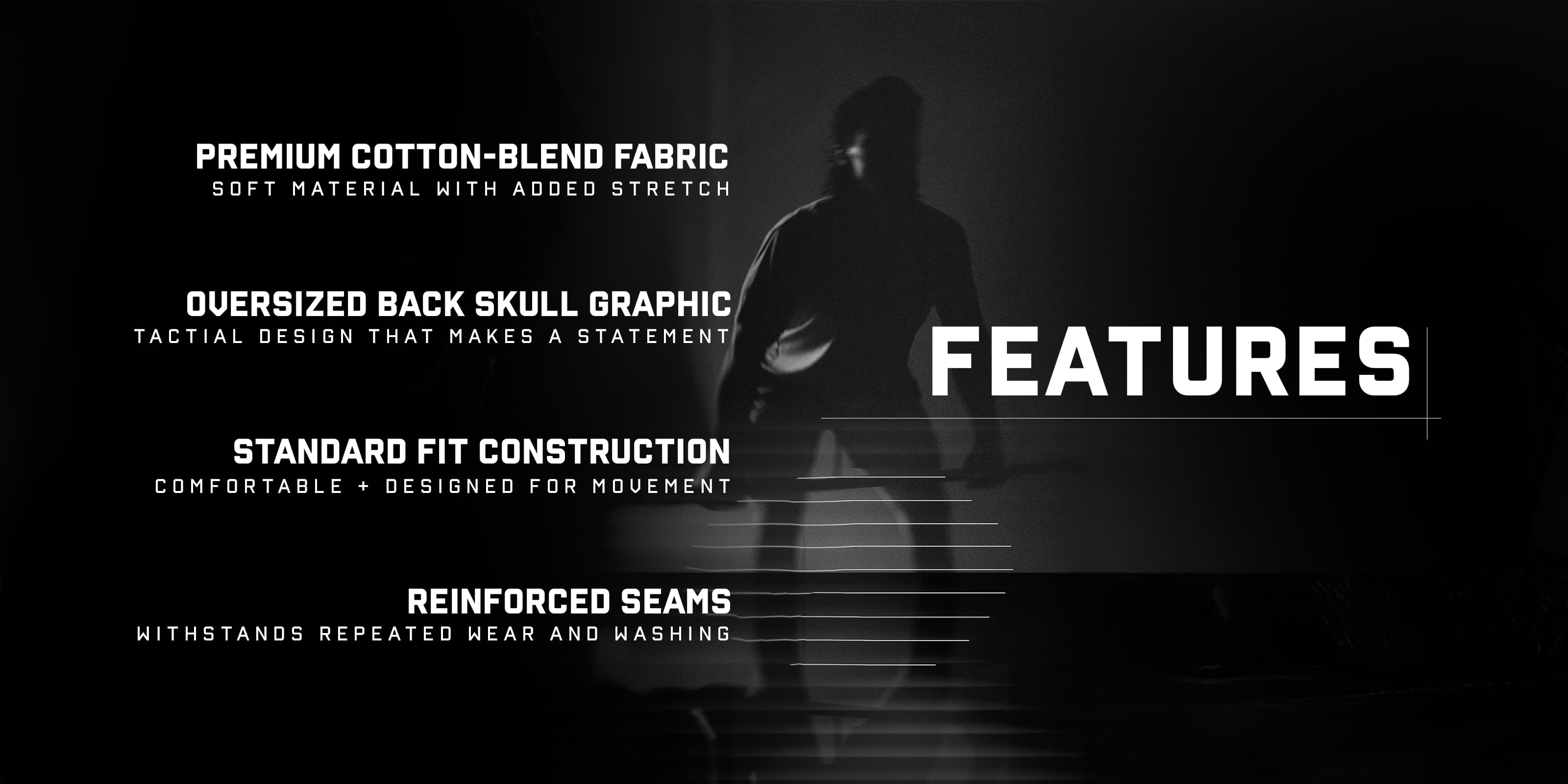 The Static Ops Tee is a lightweight, breathable athletic shirt designed for gym training and everyday wear. Featuring a clean chest graphic and bold skull print on the back, this standard-fit tee offers a soft cotton-poly blend with flexible sleeves for unrestricted movement. Ideal for lifting, conditioning, or daily errands, the Static Ops Tee combines tactical design with all-day comfort.