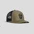 This premium adjustable hat features a custom fit and a breathable mesh back panel.